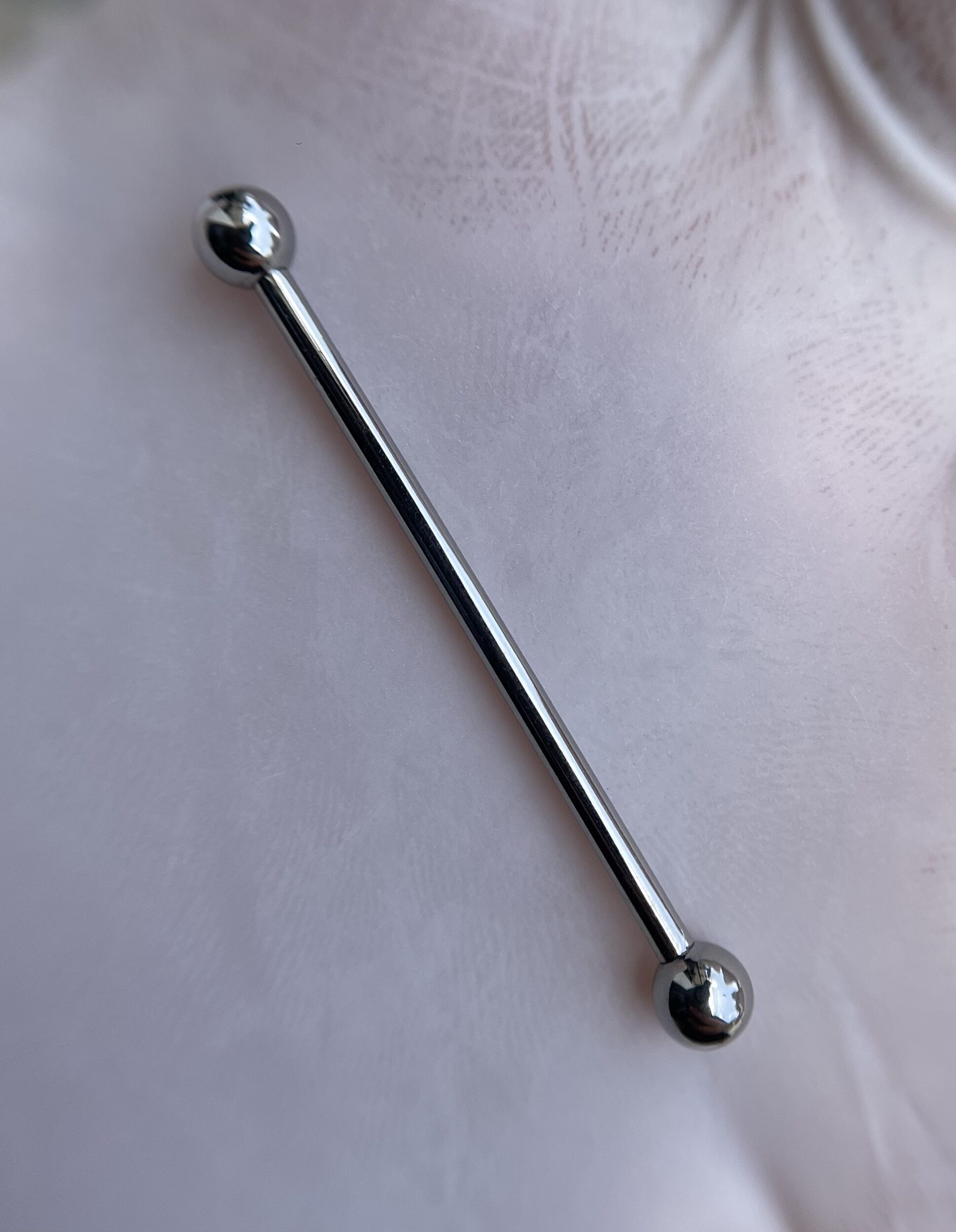 - Descripción: se compone de una barra que finaliza en sus dos extremos con un top y usualmente sus diseños se encuentran ubicados en la mitad de la barra.