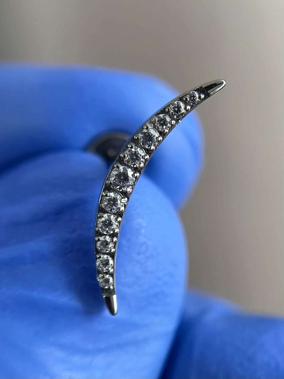 - Descripción: se compone de una barra de punta plana y un top que viene con zircones blancos.
