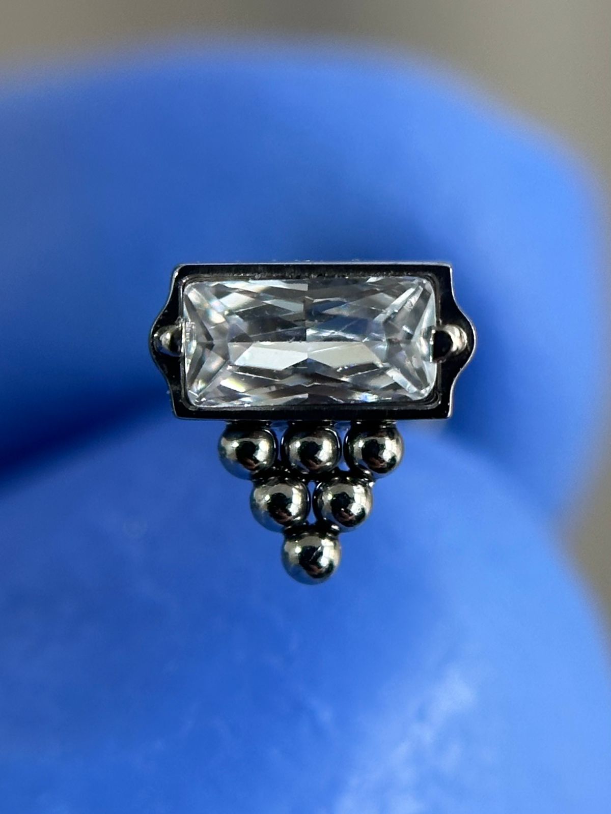 - Descripción: se compone de una barra de punta plana y un top que viene con zircón blanco y ornamentos.
