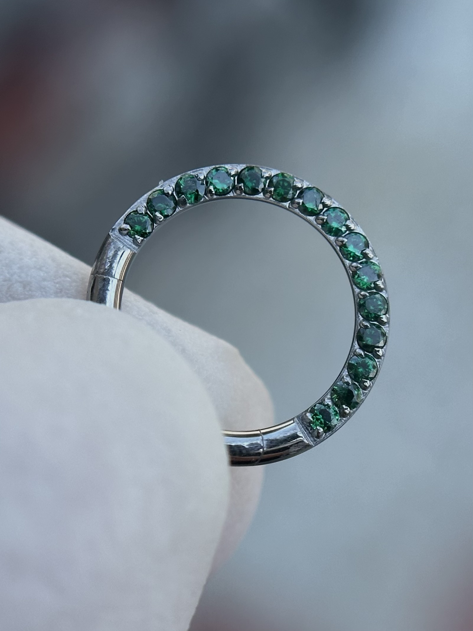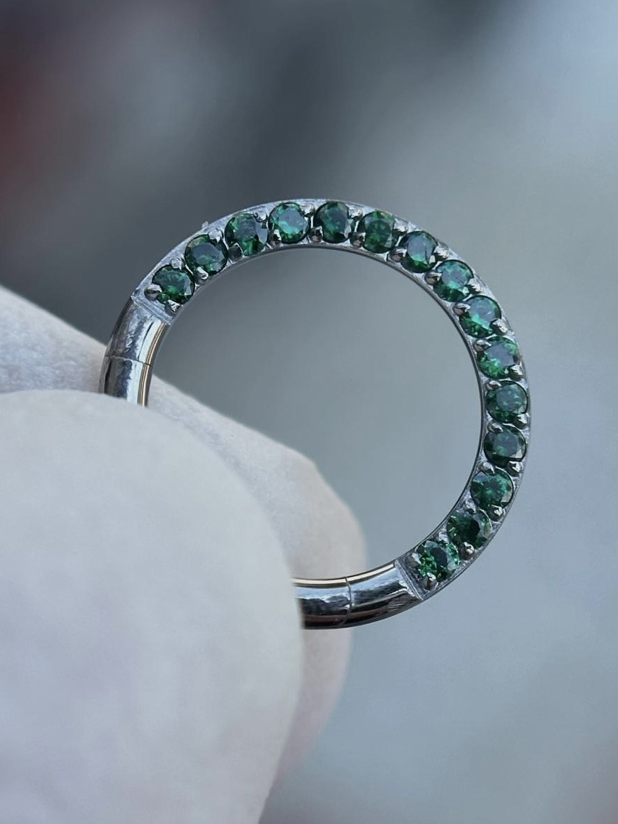 - Descripción: es de forma circular, viene con zircones verdes.