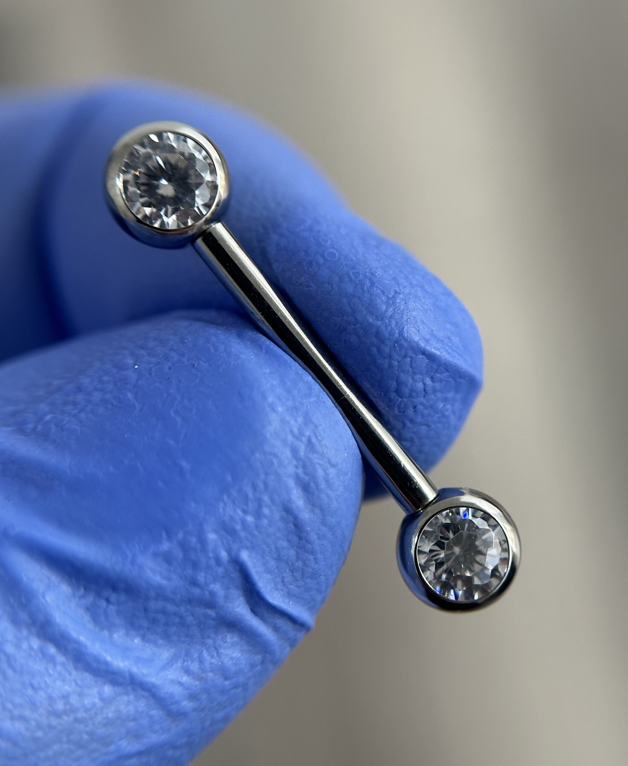 - Descripción: se compone de una barra que finaliza en sus dos extremos con dos top de zircones blancos.