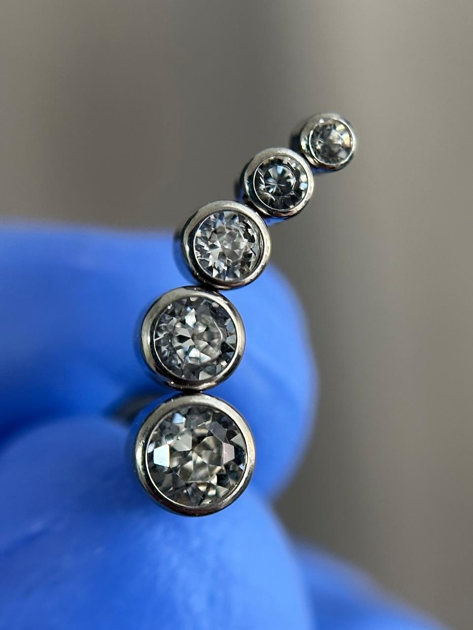 • Descripción: se compone de una barra de punta plana y un top que viene con zircones blancos.